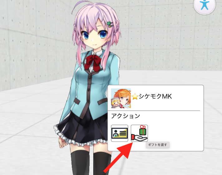 ギフトを獲得した人はアバター用のアイテムとして装着することができます。