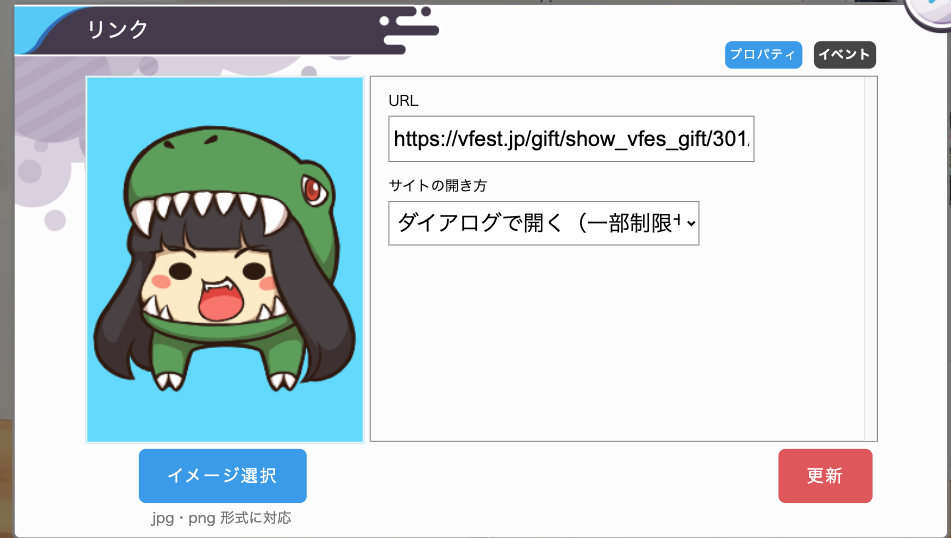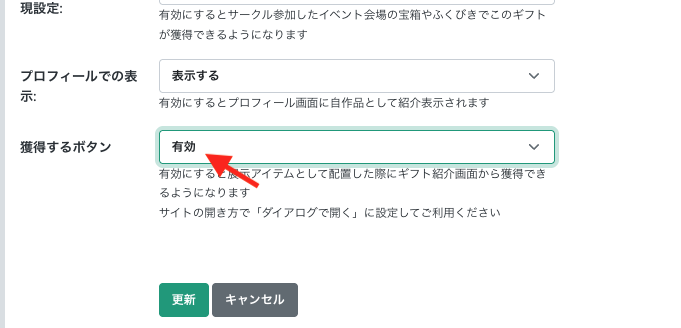 使い方はギフト編集で『獲得するボタン』を有効にして獲得URLをダイアログに配置します。
