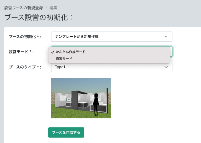 最後に「ブースを作成する」をクリックすると、ブース作成画面が表示されます。