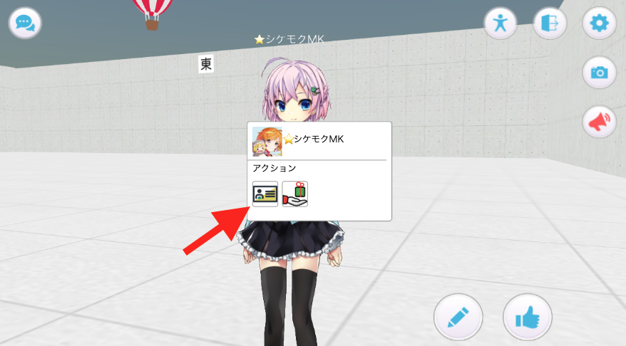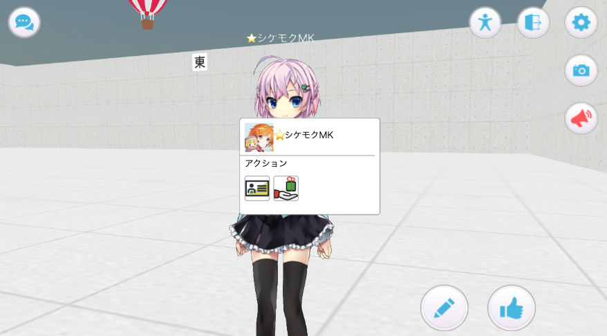 相手から見ると、キャラクターに吹き出しが表示されます。