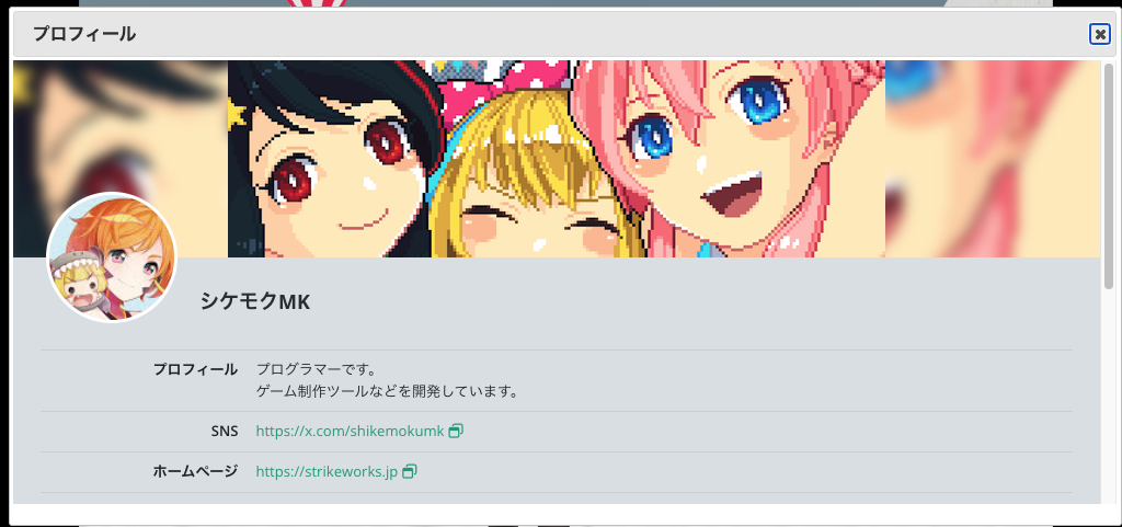 キャラクターをクリックすると、アイコンと名前が表示されるので、アイコンをクリックするとその場でプロフィールを確認することができます。