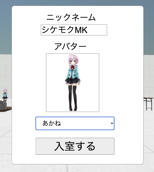 会場を選択するとアバターを選択する画面が表示されます。
